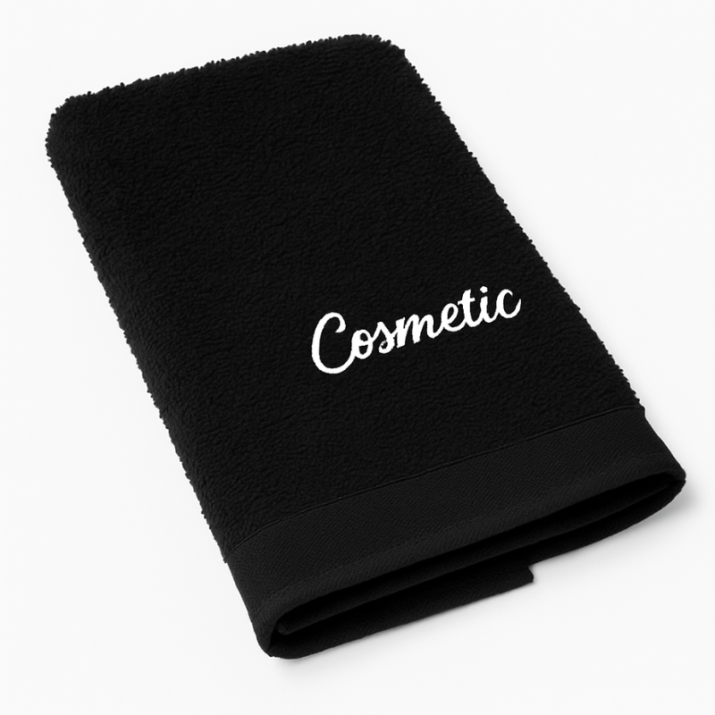 HOSPRO Black w/ White Embroidery Cosmetic Towels offer convenience and softness for removing cosmetic residue and keeping your face feeling fresh and clean.