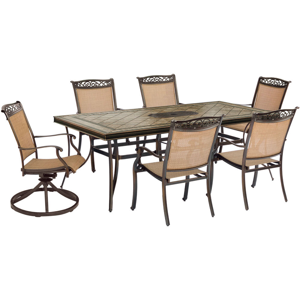 Hanover Fontana7pc: 4 Sling Dining Chairs, 2 Sling Swvl Rockers, 40x68" Tile Tbl66