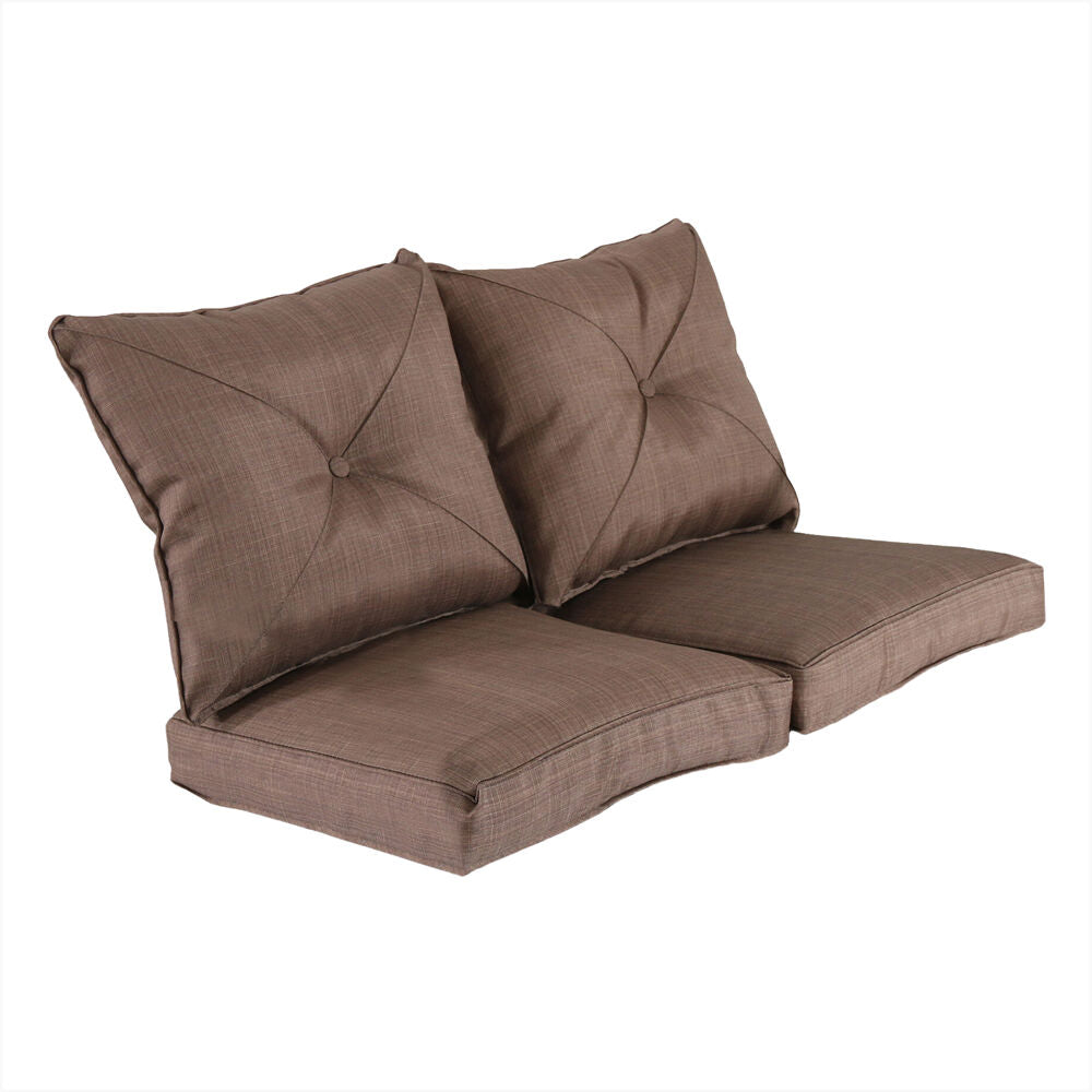 When the cushions on your Palm Bay dining set have become well-loved and worn, Hanover has your back (and seat) with this set of replacement cushions. This set includes replacements for 2 seat cushions and 2 back cushions to outfit a total of 1 Palm Bay loveseat. They feature premium, outdoor fabric that covers the fiber-wrapped foam cushions and is resistant to stains, moisture and UV harm. They're also built to withstand the wear and tear of outdoor life. Imagine the peace of mind that comes with having an extra set of cushions. No more frantic clean-ups or embarrassing apologies when accidents happen. Instead, you can focus on creating unforgettable moments with your loved ones, knowing that you have the Hanover cushion set to support you every step of the way. Outdoor cushions tend to endure a lot of wear and tear over time. With their premium materials, exceptional resistance, and thoughtful design, these cushions are the perfect addition to your outdoor oasis. At Hanover, we understand that it's the little things that make a big difference. That's why we're dedicated to bringing you high-quality, reliable products that enhance your home and elevate your experiences.