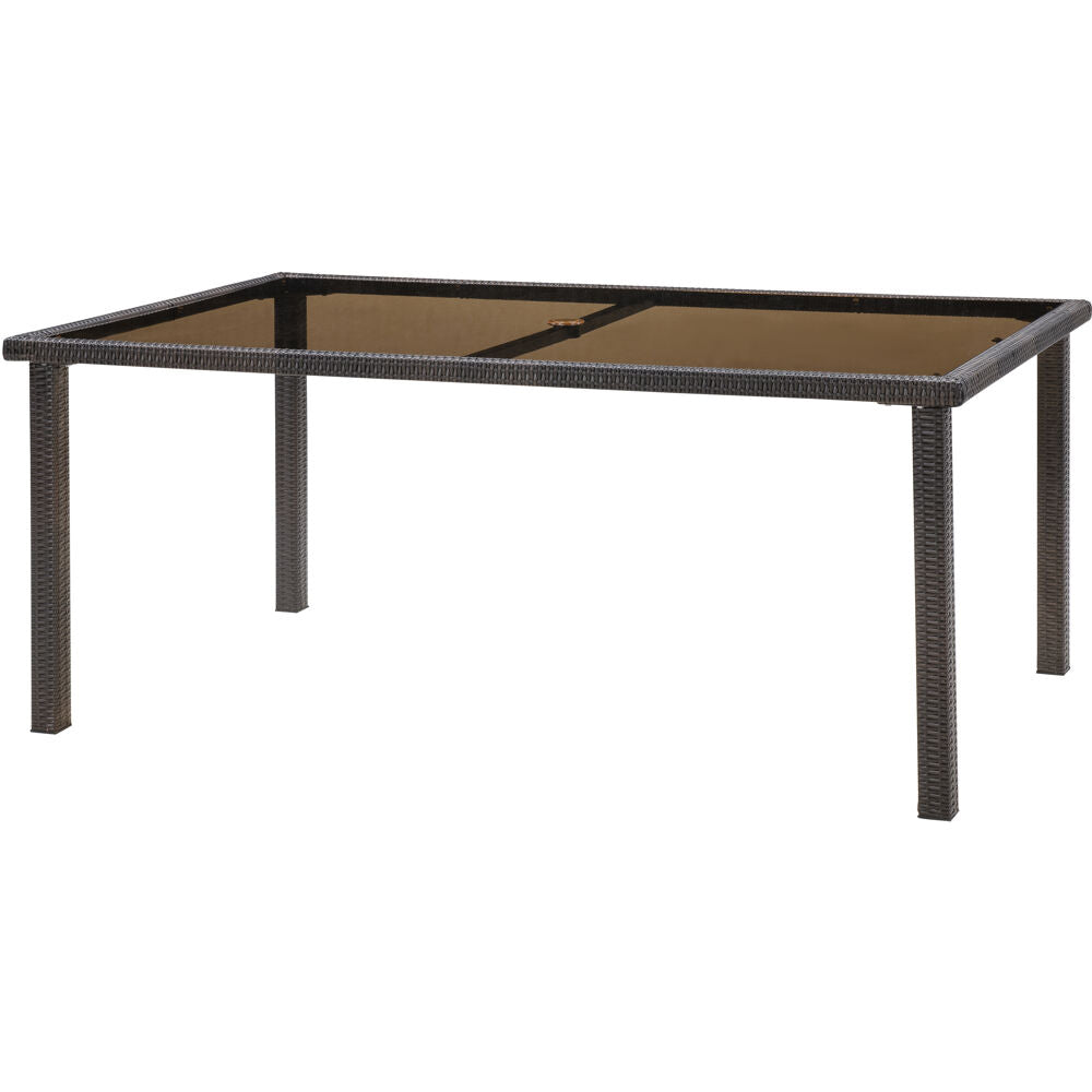 Get ready to entertain with the Strathmere dining table. This glass-top dining table is perfect for entertaining outdoors with its all-weather resin on top of heavy-gauge steel frames that resist rust and require little maintenance. The handcrafted table includes a smoked, tempered glass top and offers plenty of room for an alfresco meal with your loved ones. As you plan your outdoor dining room, lean towards Hanover Outdoor for the comfort, style and durability you can count on year after year.