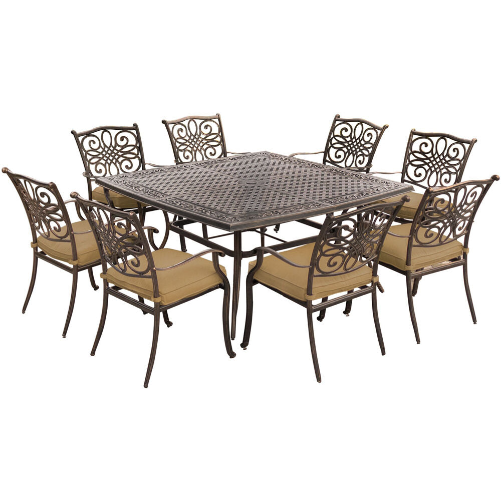 Hanover Traditions9pc: 8 Dining Chairs, 60" Square Cast Table305