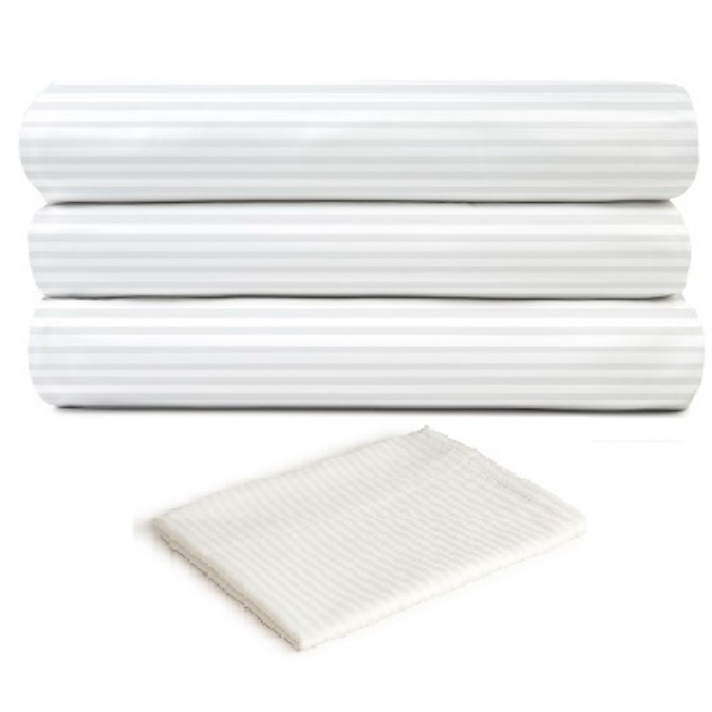 Hospro Performance Sheets Flat Sheets 0.4"/ 1cm / 10mm White/White Stripe, 70/30 Woven Cotton/Poly Blend, 12"-15" Pockets FULL 84" x 115"