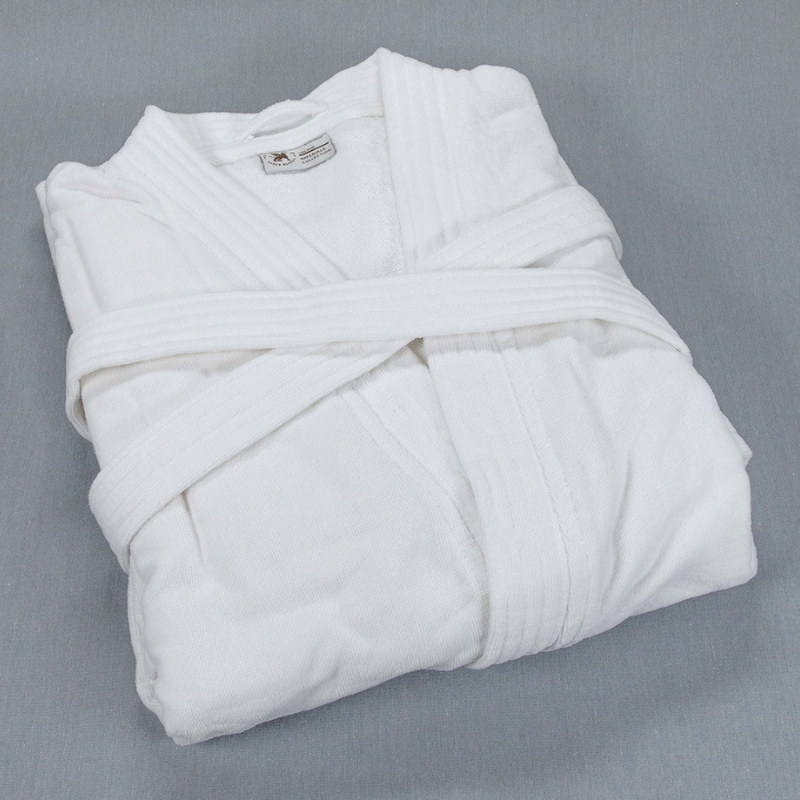 Add a touch of elegance and comfort to your hospitality collection with the Velour Kimono Robe. Featuring a smooth velour finish on the outside and absorbent terry loops on the inside, this robe is perfect for luxury hotels, resorts, and spas.