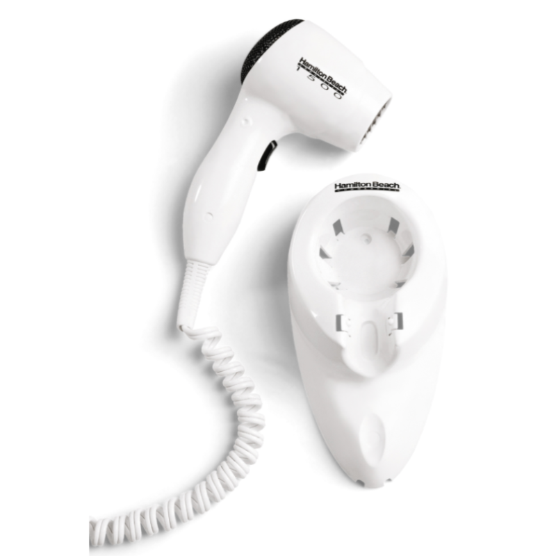 Deliver powerful performance and safety with the Hamilton 1500-Watt Wall Mount Hair Dryer. Perfect for hotels, motels, and guest rooms, it features a space-saving wall cradle, automatic shut-off, and easy toggle switch. Its compact design and sleek white finish blend effortlessly with any bathroom décor—ideal for high-traffic hospitality use.